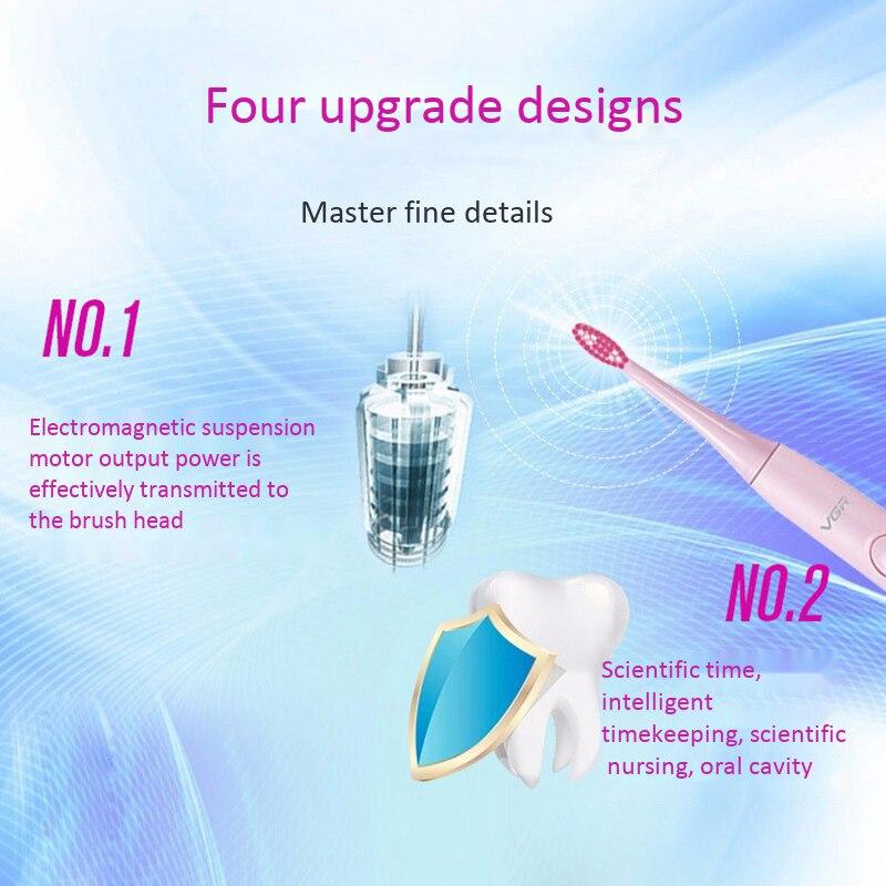 Звичайна механічна зубна щітка ніколи не впорається з очищенням зубів так само якісне, як електрощик VGR V-805, яка Було розроблено нові технології, які допомагають правильно очищати та освітлювати зуби, а також захищати ясен. Вібруючи, щетинки ретельно видаляють зубний наліт навіть у найбільш важкодоступних зонах ротової порожнини. Крім ефективного ефекту, щітка має зручність у використанні та модному дизайні.